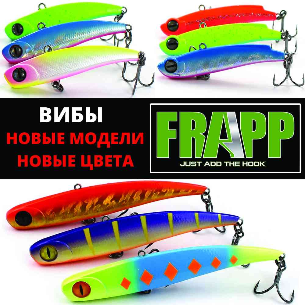 Уважаемые любители рыбалки, спешим познакомить вас с новыми моделями вибов Frapp. Приманки Jiggle и Whiphead подойдут для ловли судака и щуки, а также для зимней рыбалки. Цветовая палитра разработана специально для российских условий ловли, с учетом требований, предъявляемых нашими рыболовами к приманкам подобного класса. В ряду расцветок есть как яркие, провоцирующие, так и спокойные, натуральные варианты. И, разумеется комбинированные...