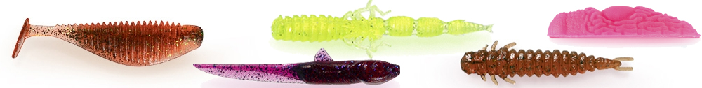 - Материал. Для приманок разработан свой силикон, а для каждой модели была подобрана его уникальная жесткость.