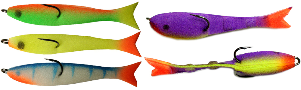 Поролоновые рыбки Мормыш - простая и эффективная приманка для ловли хищной рыбы в любых условиях. Серия выпущена в ультрафиолетовых расцветках. Считается, что цвета, способные светиться в ультрафиолете, гораздо лучше заметны на глубине. Такие приманки хорошо видны для хищной рыбы. Они производятся из плотного, эластичного материала, который хорошо пропускает воздух. Данная модель с прижатым двойником обладает свойствами “незацепляйки” и не боится зацепов. С ней можно ловить в заросших местах. Рыбки Мормыш оснащаются острыми двойниками Vido Craft. Выпускаются перфорированные и неперфорированные рыбки.