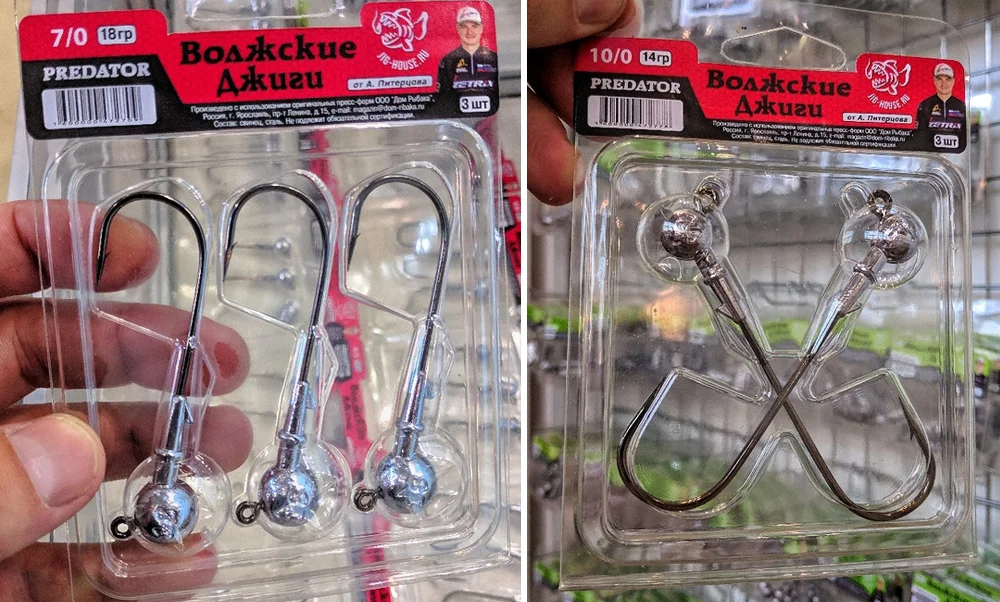 Серия под названием Predator изготовлена на основе крючка с классическим круглым поддевом. Ее авторами стали рыболовы-спортсмены Андрей Питерцов и Дмитрий Зюзин. Для отлива груз-головки был выбран плотный свинец без примесей. Она имеет классическую форму шара. Это лучший вариант для результативной рыбалки: шар подходит для любых форм силиконовых приманок и не влияет на их игру. Джиг-головки оснащены крючком с классическим круглым загибом. Он острый, прочный, мощный. Способен выдержать вываживание трофейной рыбы. Угол крепления относительно ушка составляет 120 градусов. Это повышает результативность и качество подсечки. Значения, указывающие вес джиг-головки, выбиты на свинцовом шаре, что также является плюсом, так как со временем выпуклые цифры становятся нечитаемыми. Серия "Волжские джиги" Predator представлены в размерах 5/0, 7/0 и 10/0.