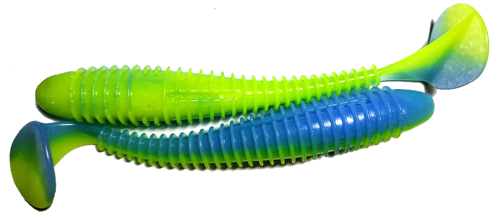 Относится к типу твистеров, причем очень крупных, что явно указывает на трофейный акцент его использования. Семи дюймовое ребристое тело с гибким хвостом способно заинтересовать серьезных по размеру рыб, как своей игрой, так и создаваемыми акустическими волнами. Вариантов оснастки достаточно много, хотя сам производитель рекомендует наиболее выигрышные – это «Каролина» и «Техас». Стоит также сказать, что довольно жесткие ребристые кольца придают визуально объема, и с очень большой вероятностью защищают приманку от зацепов, что дает возможность расширенного ее использования во всех всевозможных «трудных» участках водоема.