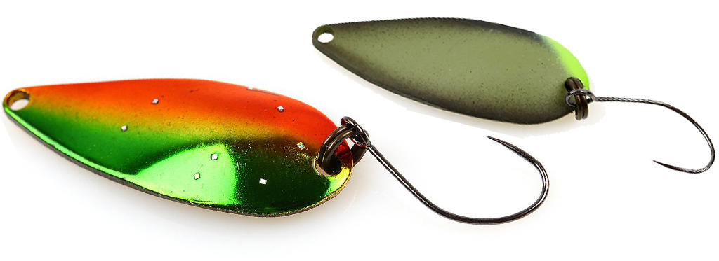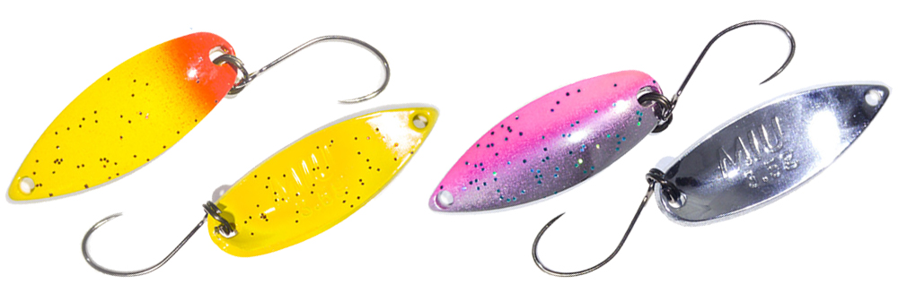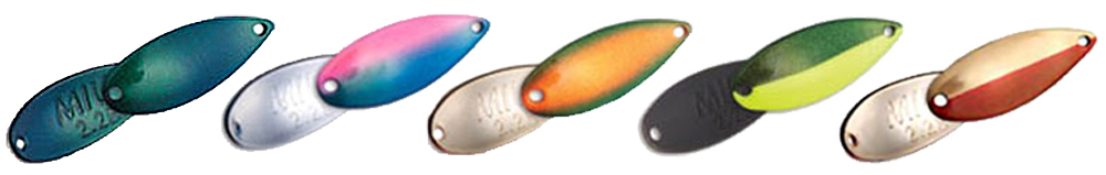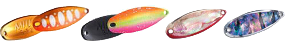 Блесна колеблющаяся Forest Maziora Miu выпускается в разных размерах и расцветках. Сама окраска представляет собой комбинирование нескольких цветов, в том числе и с отличной от основного цвета окраски внутренней стороны приманки. Такое различие добавляет контрастности, что делает приманку заметнее и несколько раздражительней для хищника. Модель хорошо зарекомендовала себя при ловле форели, хариуса, голавля, окуня.