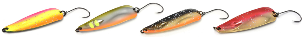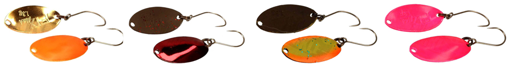 - Сбалансированная геометрия колебалок позволяет проводить их на предельно низкой скорости. При этом они сохраняют стабильную и амплитудную игру, привлекающую капризную хищницу. Приманки не раз доказывали свою исключительно уловистость в коммерческих и профессиональных «троутовых» турнирах, где приносили своим обладателям призовые места.