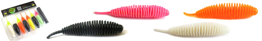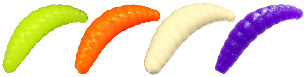 - Самые разнообразные расцветки, позволяющие подобрать перспективный вариант под любые условия ловли. В каталоге Trout Zone можно купить силикон, цвет которого будет как реалистичным, напоминающим естественную кормовую базу форели, так и ярко-кислотным, заметным с самого дальнего расстояния.