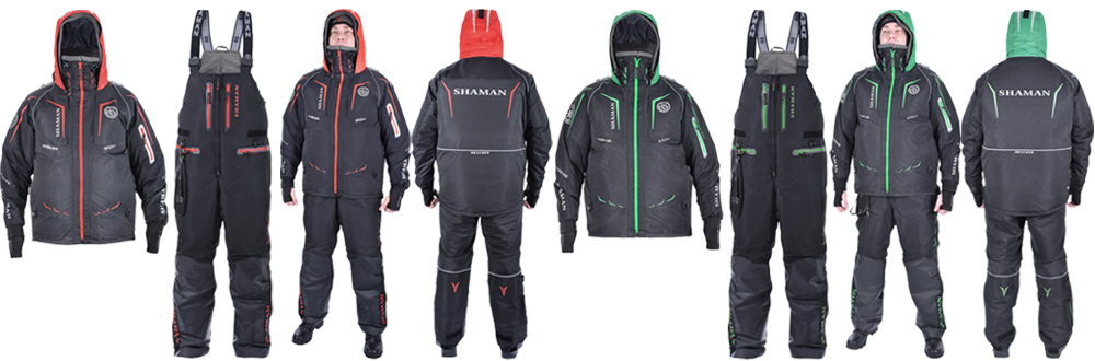 Фирменная классика жанра – ветрозащитная юбка, удлинённая спинка. На рукавах предусмотрены флисовые манжеты и специальные держатели для шипов-спасалок. Полукомбинезон также с эргономичным кроем, высокой спинкой и двухзамковой молнией. В области коленей предусмотрены съёмные наколенники из ППЭ. На всех моделях специальный карман для рыболовного черпака.