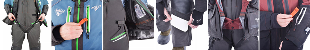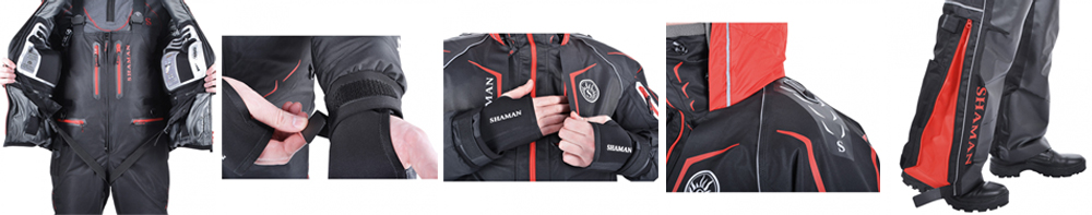 Специальные крепления на рукавах позволяют быстро использовать спасалки, входящие в комплект, в случае падения в воду. Неопреновые манжеты создают максимальный комфорт при контакте с водой.