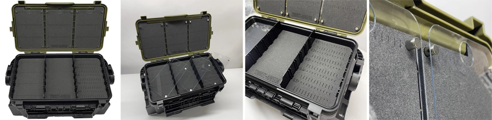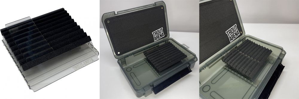 Все товары от Trout-Arena изготовлены из качественных материалов, которые прослужат не один сезон. Пенки для вклейки в крышку изготовлены из качественной и долговечной EVA, которая аккуратно вырезана и подогнана под необходимый размер, модули и картотеки — из оргстекла, которое помимо легкости и удобства использования очень красиво и органично смотрится.