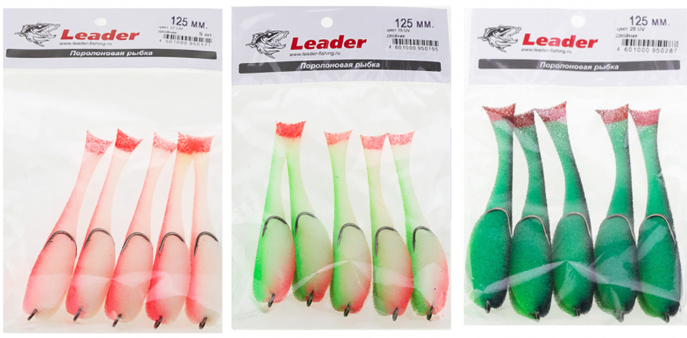 Поролоновые рыбки Leader имеют широкий модельный ряд цветовых решений, выбирая цвета поролонки, вы имете возможность привлекать, заманивать, дразнить хищника и играть с ним на его условиях, заманивая оригинальной формой и медленным завораживающим танцем, окончанием которого непременно станет кульминация на острие крючка - ваш улов будет самым лучшим.