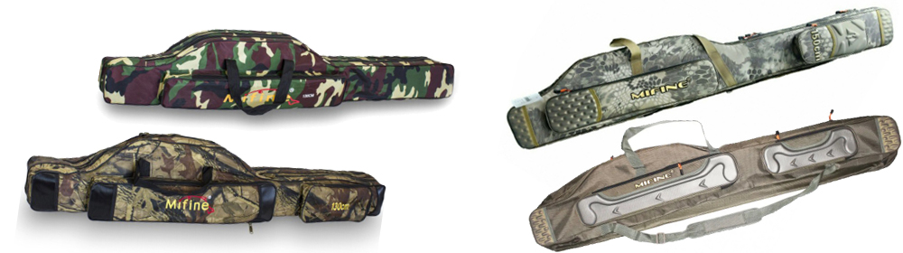 Чехлы для удилищ и катушек от бренда Mifine пошиты они из прочных и немарких материалов. Есть варианты с полужесткой конструкцией. Хорошо оберегают снасти во время переноски от возможных мелких повреждений, делают хранение более удобным. Выпускаются данные чехлы Mifine с разными размерами и вместительностью.