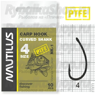 Крючок Nautilus Carp Curved Shank 1PTFE № 4