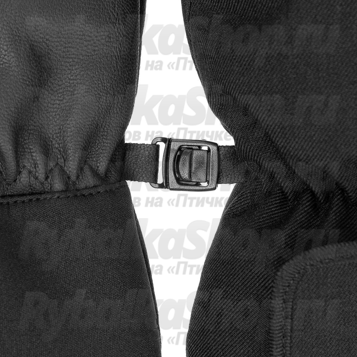 Поверхность ладони мужских варежек усилена противоскользящей накладкой из нейлона, что обеспечивает отличное сцепление с поверхностями, а эластичные резинки на запястье плотно облегают руку и надежно фиксируют варежки мужские, защищая от попадания снега и влаги.