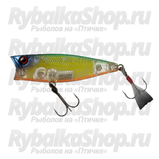 Эта приманка обладает необычайно высокими кастинговыми свойствами. При проводке происходит сильный всплеск, а кроме того, черезвычайно громко для своего размера работает «погремушка». Применять приманку можно в специальных ситуациях, когда требуется именно небольшой размер поппера.