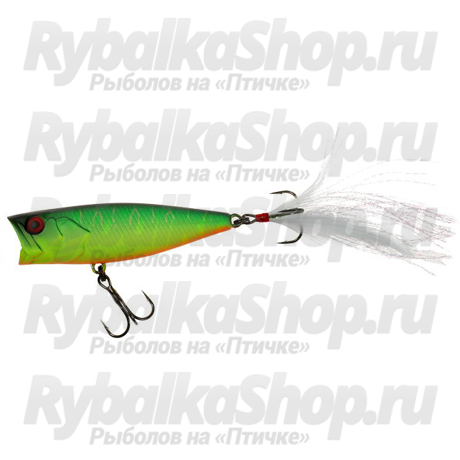 – это немного увеличенная копия приманки SK-POP, во всем же остальном она практически полная копия более мелкого собрата. Эта приманка обладает необычайно высокими кастинговыми свойствами. При проводке происходит сильный всплеск, а кроме того, чрезвычайно громко для своего размера работает «погремушка». Хвостовое оперенье помогает правильному ориентированию при забросе, и дополнительно привлекают рыбу. Применять приманку можно в различных ситуациях, главная ее цель – это щука и окунь, хотя прочие обитатели наших водоемом тоже не прочь полакомиться данным шумным озорником.