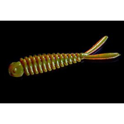 обладает гибким строением, с закрученным в виде запятой хвостиком, и довольно плотным, пухленьким телом. Материал у этой мягкой приманки стоек к зубам хищной рыбы, поэтому приманку, как правило, можно употреблять многократно.