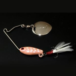 является отличным инструментом ловли форели. Данная приманка представляет собой составную модель из непосредственно тонущего воблера, с присоединенным к нему лепестком. Безусловно, такая конструкция способна отразить в два раза большее количества света. Это позволяет увеличить вероятность попадания приманки в область зрения будущего улова. Откладывает и отпечаток такая конструкция на саму игру, которая имеет свой, присущий только данному классу характер.Приманка выпускается в нескольких размерах, преимущественно для ультралайтовой ловли. Среди представленного разнообразия можно найти модели для ловли как относительно мирных, так и широкого разнообразия хищных рыб.