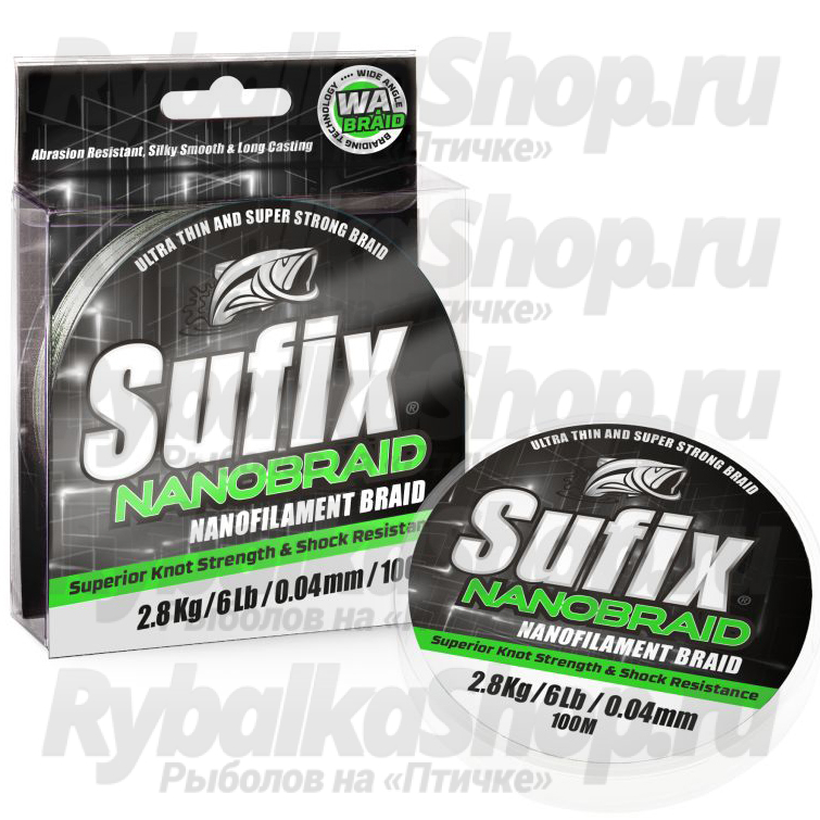 Dyneema ® плетеные волокна в Sufix Nano Braid, имеют плотность в два раза больше чем другие плетеные лески, Sufix Nano Braid так же в три раза сильнее, чем другие лески в этой категории. Лучшая новинка летнего сезона 2013-14 г.