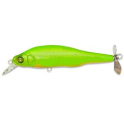 – это поверхностная приманка с пропеллером, высокой плавучестью и небольшой лопастью. Что же дает такое сочетание, и зачем конструкторы Мегабасс применили данное оригинальное строение для воблера. Начнем с пропеллера в хвостовой части, и о нем можно сказать, что это довольно эффективное средство привлечения хищника. При проводке он создает много завихреней, шума, а его несимметричное размещение добавляет игре воблера неповторимой уникальности, которая, впрочем, полностью совпала с вкусовыми предпочтениями большой трофейной рыбы. Строение приманки делает ее проводку виляющей из стороны в сторону. Небольшая лопасть работает на попытки заглубиться, а легкий вес не позволяет ей воблеру эту сделать. Размер приманки делает ее потенциальной целью и для крупного окуня, и для небольшой щуки, и одновременно для трофейных экземпляров рыб, которые чувствуют свое превосходство в водоеме, не боясь атаковать «заигравшуюся» на поверхности шумную рыбку.