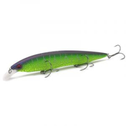 представляет собой очередную модификацию данного семейства, особенностью которого является проработанный до максимально возможного механизм дальнего заброса. Также присутствует шумовая камера, стукаясь шарики создают акустический звук, и тут даже не особо важно, схож ли он с природным – главное это работает. Помимо самой системы балансиров, которые преимущественно однотипные для всей серии, а именно смещение при забросе груза в хвостовую часть, данный воблер имеет еще один нюанс. Эта особенность заключается в складывающейся лопасти, которая при забросе прижимается к телу приманки, улучшая аэродинамические характеристики. Попав в воду, лопасть раскрывается снова до изначального положения, и воблер выдает игру ту, на которую он способен. А способен он на многое, что проявляется в его поразительной уловистости, и всеядности как для крупной, так и для мелкой рыбы.