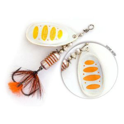 Лепесток блесны Pontoon 21 Synchrony прежде всего отличается своим декором – он двусторонний и к тому же еще и реверсивный. При вращении лепестка удалось добиться оригинального эффекта, близкого к объемному изображению. Хищник видит мельтешащий, провоцирующий рисунок лепестка под любым углом обзора. Это ли не повод для атаки?