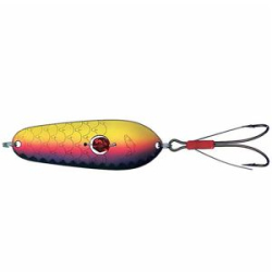 Исполненная из твердых металлов с позолотой и серебром, блесна изменяет свой цвет, в зависимости от воды и температуры воздуха. Более тяжелые металлы, впаянные с внутренней стороны блесны, обеспечивают веерные, более широкого охвата звуковые колебания. Зачем? Buch Japan – это блесна агрессор.