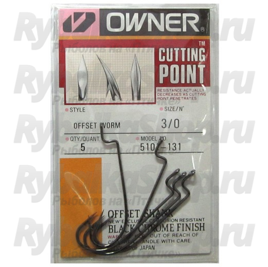 Офсетный крючок Owner 5101 имеет классический вид, и наиболее пригоден для ловли на тонкие силиконовые приманки вроде червей. У офсетника длинное цевье, прямая ступенька, острая заточка и прочная конструкция. В упаковке имеется от 5 до 6 штук в зависимости от модели. Расцветка черная, блестящая.