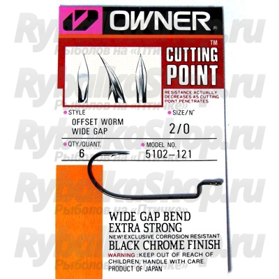 серии WIDE GAP, - что означает, что у крючка имеется достаточно большой зазор, чтобы использовать приманки с объемным телом. В тоже время это не самый большой загиб, его можно назвать средним, и в ассортименте Овнер имеются еще более «сильные» представители этого направления. Данную модель можно назвать Wide Gap модификацией крючка Owner 5101, с таким же длинным цевьем, прямоугольной ступенькой, но с более серьезным изгибом.