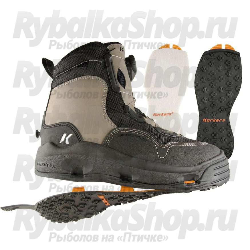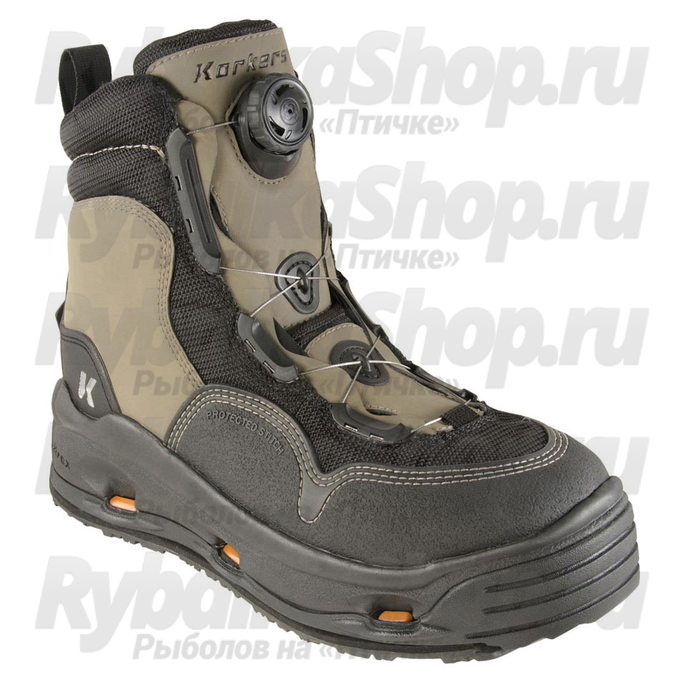 Забродные ботинки с непревзойденными характеристиками: сочетают в себе инновационные технологии и традиционный дизайн. • Система сменных подошв OmniTrax® позволяет добиться идеального сцепления для рыбалки в любых условиях. • Изготовлены из гидрофобного материала, что сокращает время сушки и значительно снижает риск переноса инвазивных видов. • Система шнуровки Boa® M2 облегчает процесс надевания/снятия ботинок и способствует оптимальной фиксации ботинка на ноге. • Усиленная основная подошва, уменьшенное количество швов, тройная прошивка в защитном углублении вдоль голенища и увеличенный литой носок обеспечивают повышенную прочность. • Широкие дренажные отверстия и внутренние дренажные канавки для более эффективного стока воды и снижения веса. • За счет меньшего веса ботинки чувствуются комфортнее аналогов. • В комплект входит две пары сменных подошв. Вес пары: 1 кг 417 гр.
