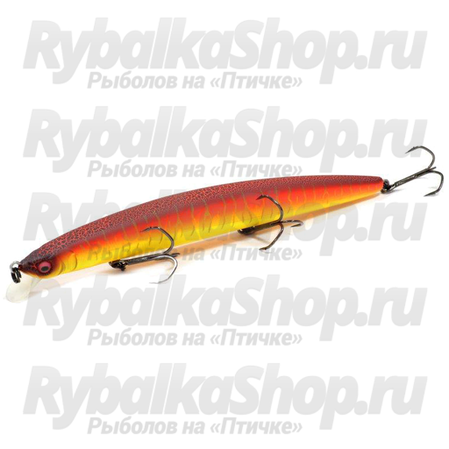 Воблер Megabass X-140 – это одна из самых длинных приманок в линейке от Мегабасс, и длина его только представьте, превышает 14 сантиметров. Разумеется, встречи данному гиганту предстоят с самыми авторитетными представителями подводных хищников. У приманки очень стройное тело, и это наделяет ее некоторыми интересными особенностями при проводке. Одна из которых остаточное движение, приманка после остановки проводки еще прилично движется по инерции, причем не только вперед, но и в стороны, в зависимости от того, куда была направлена сила движения перед паузой. Система балансиров X-140 не дает приманке заваливаться на бока, и движения напоминают естественные, такие же как в реальной природной ситуации с живой рыбкой, хотя несколько специфические, что нельзя не отметить. При забросе балансиры смещаются в хвост, что дает возможность подальше кинуть ее при забросе. Естественно, что для такой махины тройников было использовано три штуки, равномерно распределяя их по всему телу. Megabass X-140 хорошо работает по щуке, и нередко выручает в той ситуации, когда остальные воблеры перестают работать.