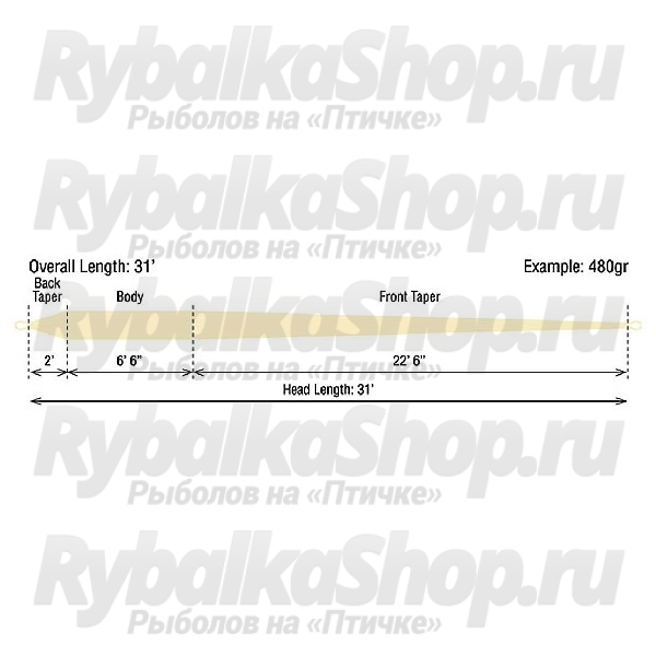 Шнур стреляющая голова Rio Steelhead SSH 34ft 550gr цв. lvory