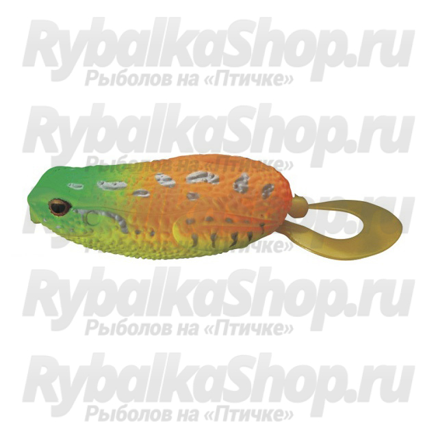 Расцветка лягушат разнообразная, изобилует всякими оттенками, придающими приманке эффективности и агрессивности. Хвостик выполнен в форме гибкой лапки с небольшим шариком на конце. При своих размерах 6 см, весит более 16 грамм, что благоприятно действует на дальность полета при забросе. Приманка работает в поверхностном слое, не тонет. Крючок вмонтирован таким образом, чтобы придать лягушонку максимальной незацепляемости, что позволяет протаскивать ее по ковру водной растительности.