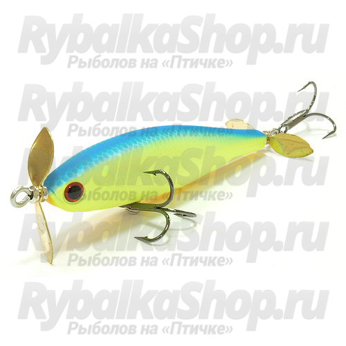 – относится к классу пропбейтов, имеет в наличие два пропеллера, спереди приманки и в хвостовой ее части. Воблер очень шумный, выполнен в варианте тонущем, что позволит погрузить ее на нужную глубину и заняться поиском на ней рыбы. Такая особенность открывает широкий горизонт для творчества, к тому же вариантов проводки допускается множество. Жерех, окунь, щука обязательно оценят старания данного «вертолета». Приманка выпускается в нескольких вариантах по размеру, для разных по объему хищников и их вкусовых предпочтениях.