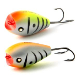 имеет все отличительные черты своего семейства по внешним данным, и его основная отличительная черта, это утяжеленная форма, если сравнивать с собратьями. Соответственно у него самый дальний полет, заглубление предусмотрено до метра. Данная модель оснащается острыми тройниками. Цель – окунь, форель, небольшая щука, голавль, язь. Разловить этого малыша не составит труда, из-за его шустрого поведения, на него постоянно есть кому заявить свои требования, поэтому готовьтесь к интенсивным поклевкам.