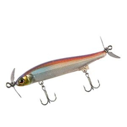 оснащается двумя пропеллерами, в хвостовой и передней части. Приманка тонущая, но если начать движение сразу после приводнения, то воблер будет рассекать верхний слой воды, создавая кучу брызг и шума. Можно слегка подождать, и приманка опустится на глубину, после чего начать его проводку. Таким образом можно регулировать глубину облова, ища рыбу в разных слоях воды. Забрасывается воблер хорошо, размер способствует к привлечению и крупной и небольшой рыбы. Охотно берут воблер щука и жерех.