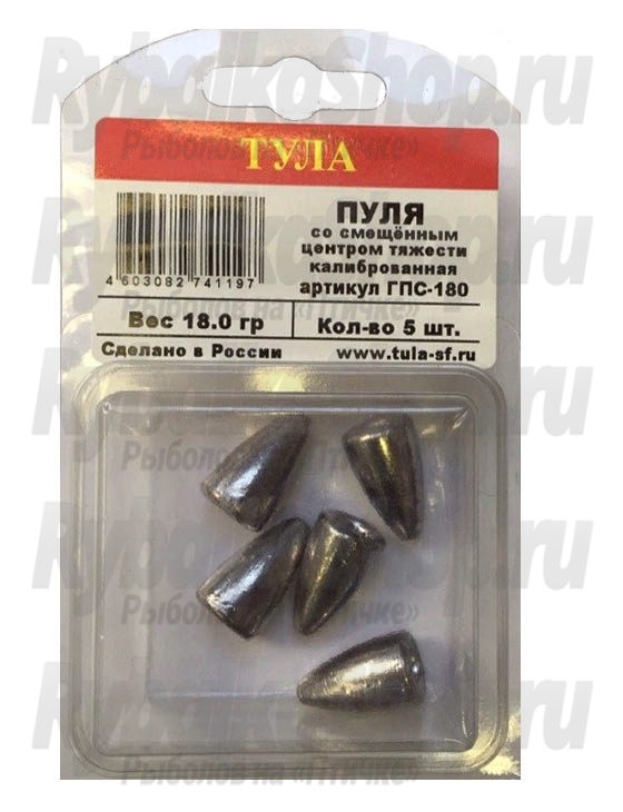 выпускается в двух вариантах, - классическим калиброванным и со смещенным центром тяжести. Название данный огруз получил из-за близкого сходства по форме с оружейной пулей. Груз "Пуля" предназначен для оснащения рыболовных конструкций, и благодаря соей обтекаемой форме является чрезвычайно полезным приспособлением для ловли в закоряженных, заросших растительностью местах. В связке с незацепляемой приманкой дает возможность облавливать перспективные и одновременно проблемные места, в которых существует большая вероятность встретить желанного по размеру подводного хищника. Пуля имеет сквозное отверстие, в которое и продевается леска, нижняя же утолщенная часть имеет полость пошире, и способна вместить бусинку. Выпускается данный свинцовый груз в довольно многочисленных размерах, в пакетике поставляется по 5 штук, и до 12 размера включительно идет в полиэтиленовым пакетике, а начиная с более увесистого размера комплектуется еще и блистерной упаковкой.