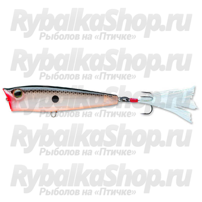 – отличная приманка, с заслуженной репутацией «добычи на расхват». Спроектирована в лучших традициях поверхностной хлюпающей приманки с блестящим хвостовым опереньем и привычной водозаборной ротовой полостью. У приманки голографическое светоотражающее покрытие, переливающееся на солнце разными цветами радуги. Голавль, окунь, жерех, щука – никто не пройдет мимо этого поверхностного баломута. При рывковой проводке само поведение приманки провоцирует на атаку, и даже несмотря на небольшие размеры, своими брызгами и хлюпаньем, воблер способен привлечь не только средних размеров хищника, но и крупную особь.