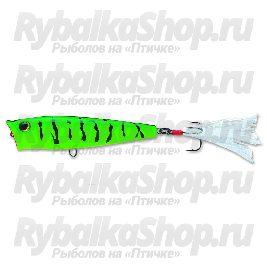 – отличная приманка, с заслуженной репутацией «добычи на расхват». Спроектирована в лучших традициях поверхностной хлюпающей приманки с блестящим хвостовым опереньем и привычной водозаборной ротовой полостью. У приманки голографическое светоотражающее покрытие, переливающееся на солнце разными цветами радуги. Голавль, окунь, жерех, щука – никто не пройдет мимо этого поверхностного баломута. При рывковой проводке само поведение приманки провоцирует на атаку, и даже несмотря на небольшие размеры, своими брызгами и хлюпаньем, воблер способен привлечь не только средних размеров хищника, но и крупную особь.