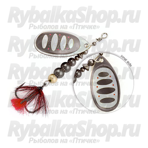 Конструктивно, блесна Pontoon 21 Ball Concept отличается несколько иным, чем у Synchrony строением сердечника. Он у Ball Concept наборный, состоящий из нескольких шариков разного диаметра. Именно за счет сердечника центр тяжести блесны несколько иной, он чуть смещен к задней части тела, что положительно сказывается на дальности и точности заброса. Кроме того, при проводке, блесна Pontoon 21 Ball Concept в водной толще генерирует несколько иные колебания, влияющие на реакцию хищника. Что касается основного «рабочего элемента» блесны Pontoon 21 Ball Concept - лепестка, то он аналогичной с Synchrony формы, с такой же реверсивной раскраской, отклонение от оси на уровне 40-45 градусов, позволяющее использовать приманку как на течении, так и в стоячей воде. Острейший тройник Owner серии ST-36BC с заточкой жал Cutting Point, оснащенный миниатюрной мушкой, завершающий штрих к портрету блесны Ball Concept от Pontoon 21.