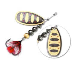 Лепесток блесны Pontoon 21 Synchrony прежде всего отличается своим декором – он двусторонний и к тому же еще и реверсивный. При вращении лепестка удалось добиться оригинального эффекта, близкого к объемному изображению. Хищник видит мельтешащий, провоцирующий рисунок лепестка под любым углом обзора. Это ли не повод для атаки?