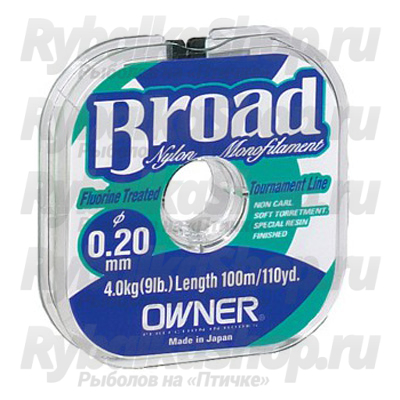 Леска Owner Broad 100м имеет слегка зеленовато мутный оттенок ,обладает хорошими разрывными свойствами и тянучестью на разрыве. Очень мягкая и не склонна к бороде и запутыванию.