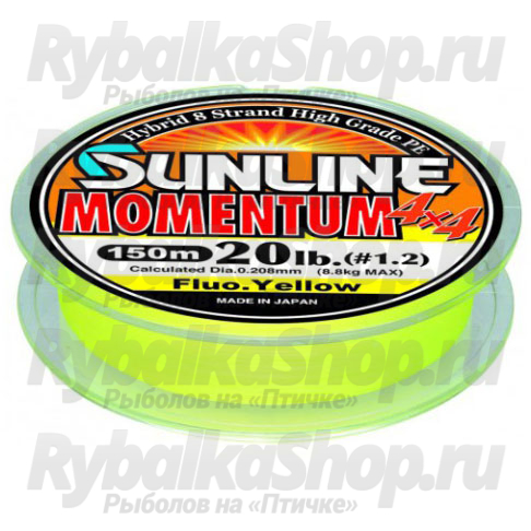 Sunline Momentum 4x4 – гибридная плетенка, выполненная по схеме 4Х4, т.е. сплетенная из микса волокон полиэтилена и полиэстера. Хорошие полетные характеристики, высокая мягкость и небольшая цена, а так же некоторая растяжимость делают этот шнур хорошим выбором не только для воблерной и поверхностной ловли, а и при применении «железа» - вращающихся и колеблющихся блесен и пилькеров. При этом Sunline Momentum 4x4 достаточно неплохо подходит и для не слишком тяжелого джига - ярко-желтый флуоресцентный цвет шнура позволяет отслеживать проводку и фиксировать поклевки, причем на любом фоне.