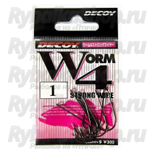 Decoy Worm 4 - серия крючков с прямым, длинным цевьём, на котором расположены две бородки призванные фиксировать силиконовую приманку либо естественную насадку. Хорошо зарекомендовали себя в тандеме с разборными груз-головками Gravity поскольку имеют достаточно большое ушко и могут легко двигаться на шарнирном соединении. Рекомендуется применять для ловли с прогонистыми приманками в местах свободных от зацепов. Также пользуются большим успехом у любителей ловли бычка и у любителей ловли на живца.
