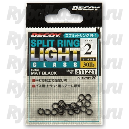 Заводные кольца Decoy Split Ring выполнены из чрезвычайно упругой стальной проволоки, и благодаря этому не деформируются на этапе оснащения ими приманок, петли которых выполнены из особо толстой проволоки. Край проволоки Decoy Split Ring срезан под углом, что облегчает монтаж колец, особенно мелких размеров, а черное, антибликовое покрытие не только не отпугивает осторожных рыб, но и позволяет эксплуатировать эти кольца в соленой воде.