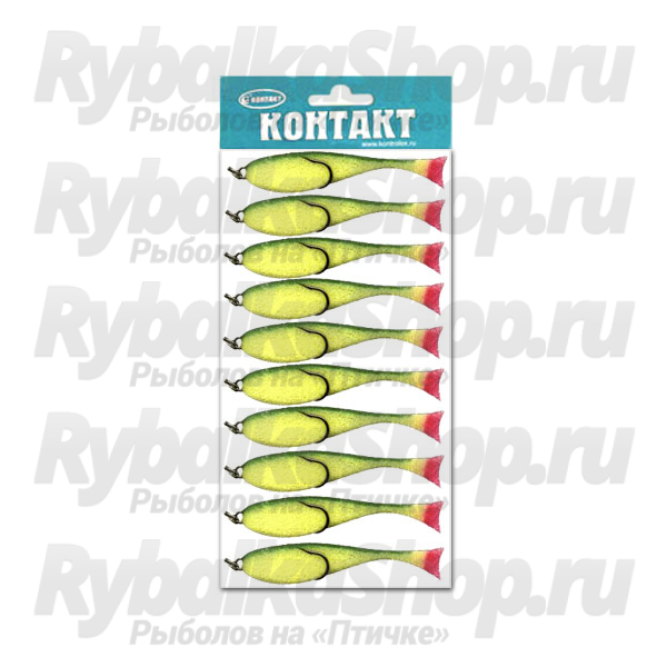 Поролоновые рыбки "Контакт" изготавливаются методом "резки" из плотного и жесткого материала, обеспечивая тем самым долговечность приманки и характерную игру для "резанных" моделей в отличие от плавленного поролона. Приманка качественно склеена и устойчива к механическим повреждениям. Оснащается крючками Eagle Claw и Cannelle. Внутри поролоновой приманки отсутствует «удлинитель», кольцо крючка выходит непосредственно из «головы» рыбки. Ушко крючка независимо от оснастки (двойник или тройник) всегда соосно дужке стандартного «ушастого» груза.