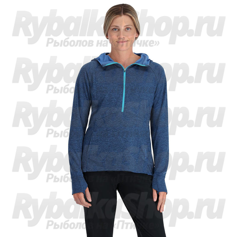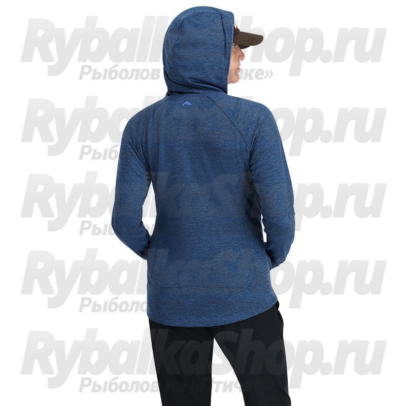Термофутболка Simms Women's Bugstopper Hoody, Sapphire Heather изготовлена из гладкого двойного трикотажа, который тянется, отводит влагу и быстро сохнет