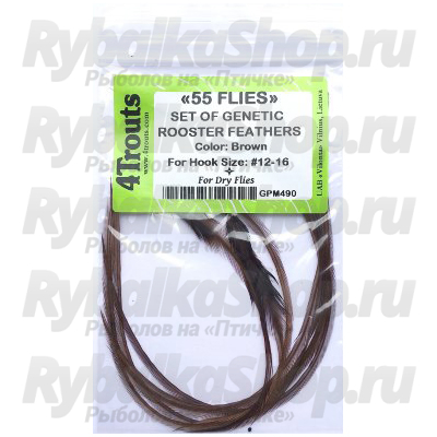 Набор перьев из седла петуха "55 мушек" (4Trouts) #8-12 Коричневый