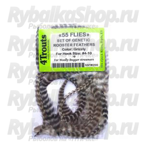 Набор перьев из седла петуха "Woolly Bugger" (4Trouts) #4-10 Гриззли