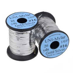 Плоский люрекс UNI-Mylar является эксклюзивной продукцией фирмы UNI Products. UNI Mylar Pearl <.strong>– перламутровый люрекс, применяется для изготовления тела мокрых лососевых, форелевых, щучьих мух, стримеров.