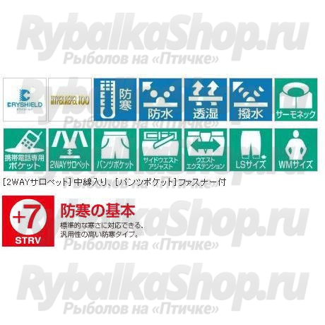 Модель тёплого демисезонного комбинезона Shimano Nexus RB-055J из непромокаемого и не продуваемого материала «Dryshield». «Дышащие» свойства комбинезона обеспечивает внутренняя подкладка. Показатели данной мембранной ткани: водостойкость от 10000 до 20000мм, паропроницаемости от 4000 до 8000 гр./м за 24 часа. Капюшон затягивается и регулируется по длине. Специальный карман для мобильного телефона или навигатора. Удобные, не сковывающие движения штаны.