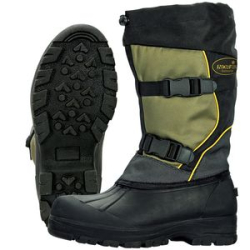 Сапоги изготовлены из прочного нейлона 900D Oxford. Для удобства и разгрузки мышц ног при длительной ходьбе, на их голенищах имеются по две регулируемые стяжки с замками. Верх сапога имеет защиту от снега с кнопочным фиксатором. Сапоги имеют вынимаемые вкладыши. Для обеспечения влагоотталкивающих свойств верхний материал и все швы обработаны химическим составом DuPont Teflon. Трехслойный вкладыш, толщиной 9 мм, обеспечивает надежную термоизоляцию: полипропиленовый слой впитывает и изолирует влагу; фетровый слой удерживает теплый воздух и обеспечивает надежную термоизоляцию; фольга отражает холод, поддерживая температуру тела; подошва изготовлена из прочного материала, который сохраняет эластичность при низкой температуре и имеет форму протектора, препятствующего скольжению. Обеспечивают термозащиту до температуры -20°С.
