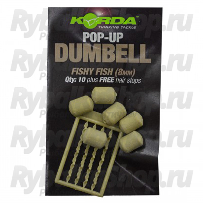 Серия искусственных насадок от команды Korda, теперь включает в себя плавающую имитационную приманку в форме гантели (Dumbell). Как и в остальной части насадок, они отличаются от пластиковых приманок других производителей, тем что ароматизатором Fishy Fish (рыбный) был в веден в пластик в ходе производства, а не просто пропитана в аромате, который быстро смывается. Приманка успешно протестирована командой Korda и показал отличные результаты на водоемах Европы. Pop-Up Dumbell имеет положительную плавучесть и не погружается на дно под весом крючка, в отличие от Slow Sinking модели. Может использоваться в качестве плавающей подсадки для тонущих бойлов, чтобы создать идеальную медленно тонущий монтаж. Или для использования с оснасткой Zig-Rig.